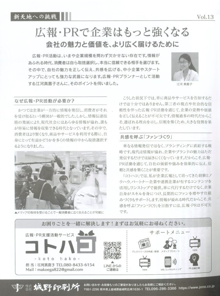 今回は、企業の魅力と価値をより広く届けるための広報・PR活動支援について紹介しています。